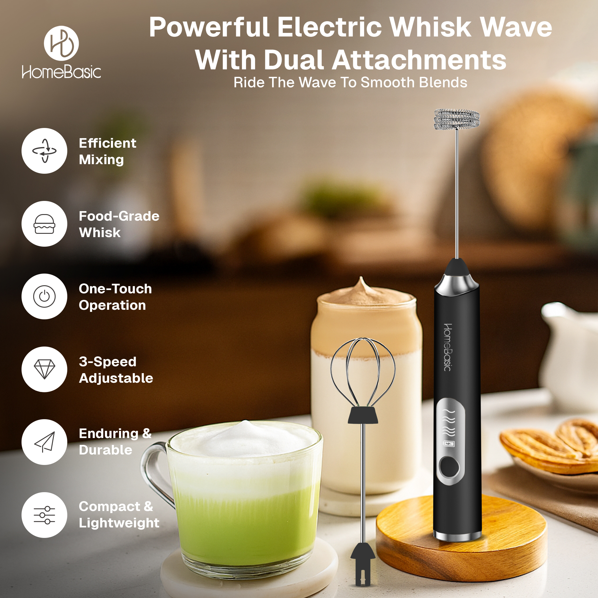 Love café-style coffee at home? The HOMEBASIC Handheld Coffee Frother in Midnight Black is your new go-to gadget. Whether you’re into creamy lattes or frothy cappuccinos, this 3-speed electric coffee frother gives you thick, smooth foam in seconds.