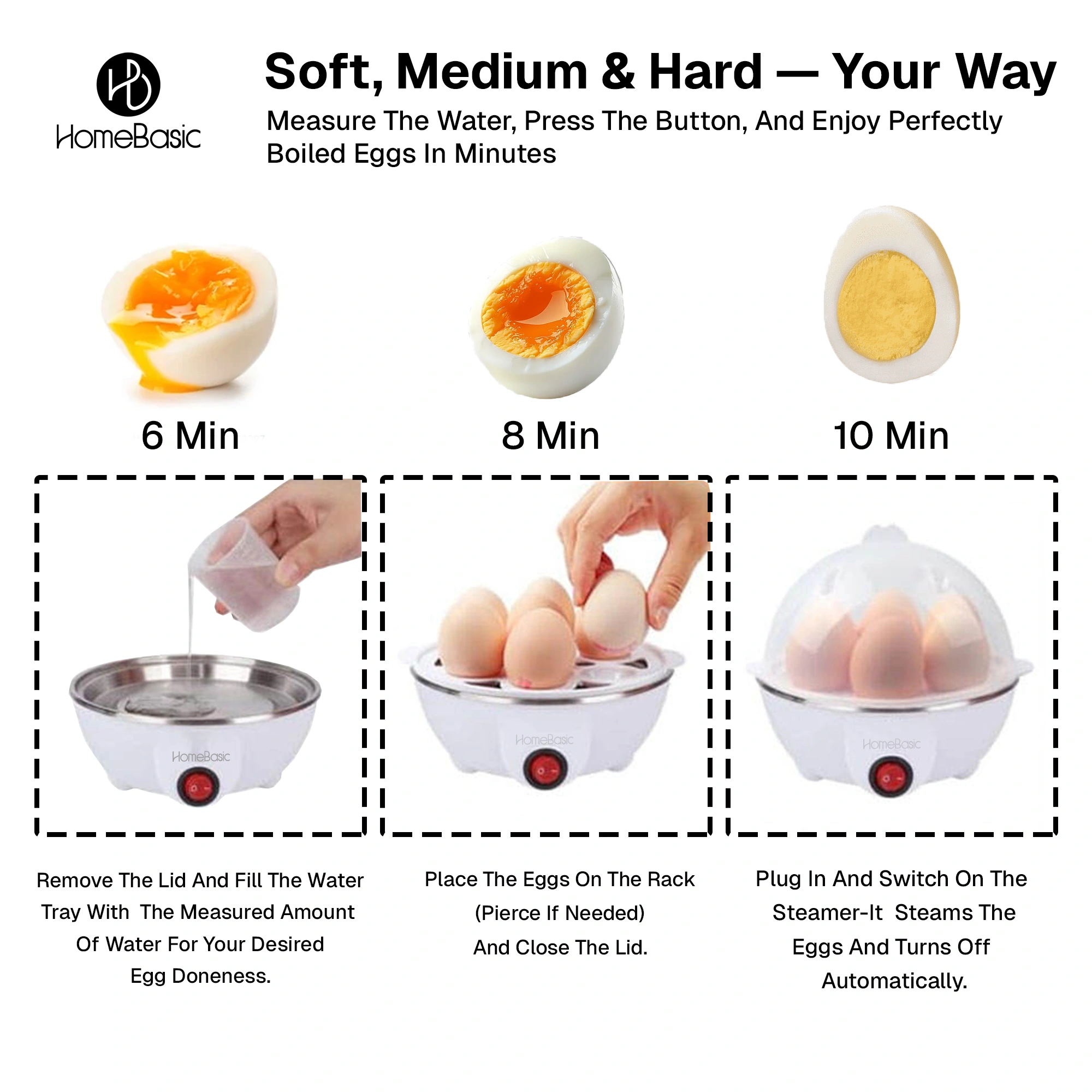 - Fast & consistent 7-egg cooking: Boil up to 7 eggs at a time with even heat distribution for quick, reliable breakfasts. The 350W rapid heating plate helps you prepare eggs in just a few minutes.