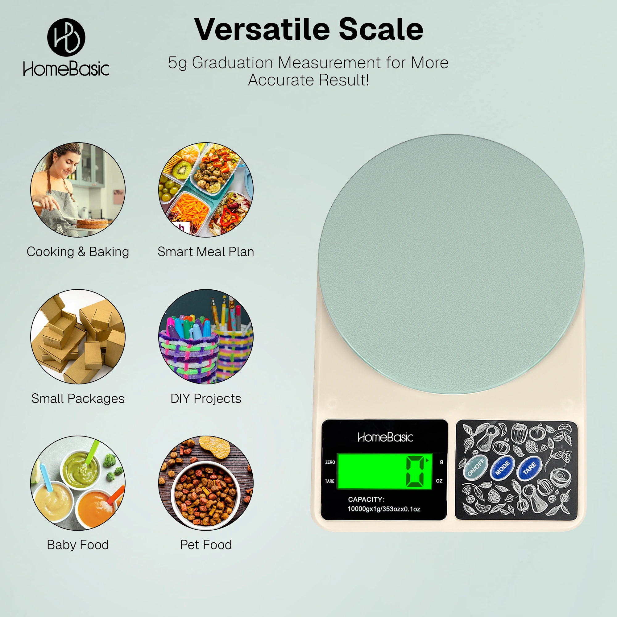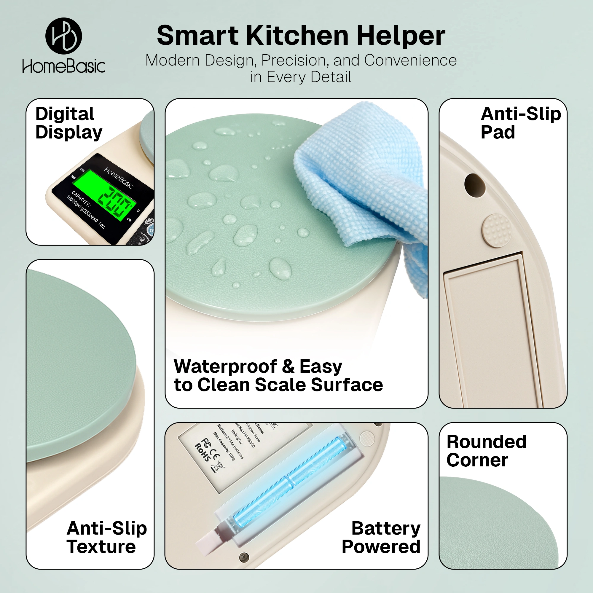 Whether you’re weighing ingredients for a cake, tracking macros for fitness, or preparing perfectly portioned meals, HomeBasic delivers trusted accuracy in a stylish Beige+Green design. The compact build ensures it fits seamlessly into any kitchen drawer or countertop.