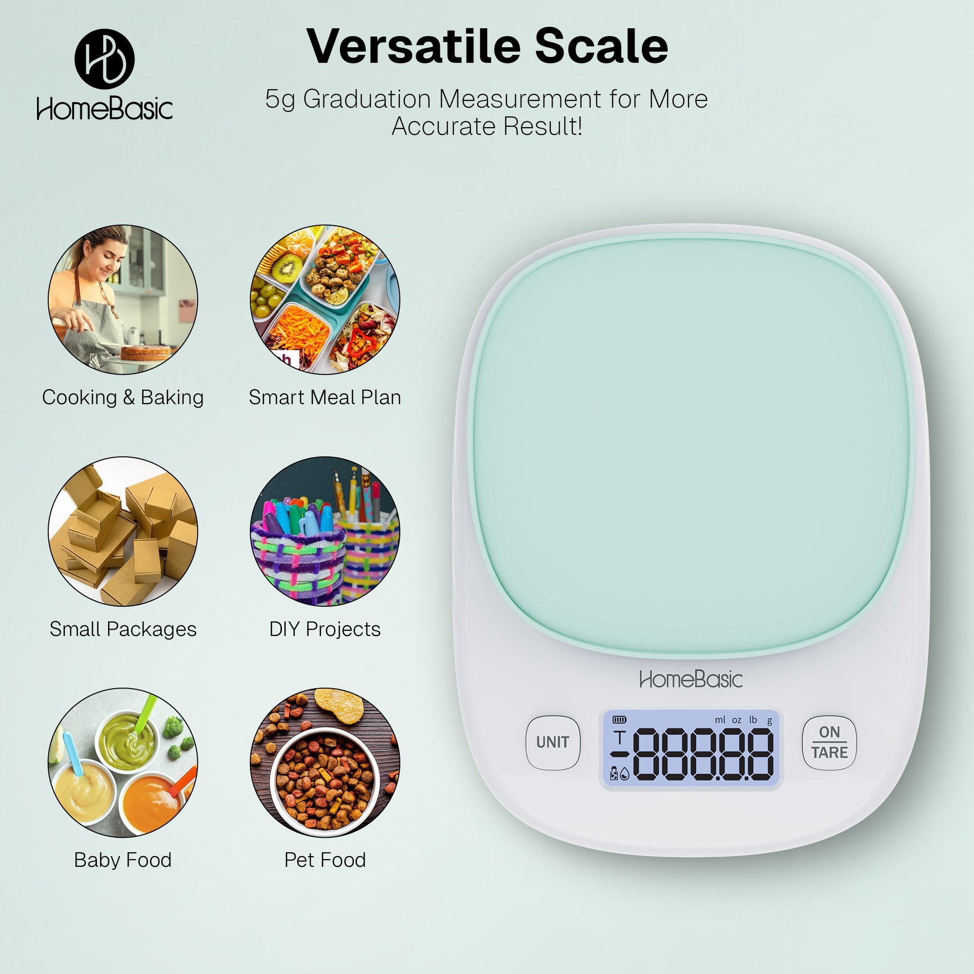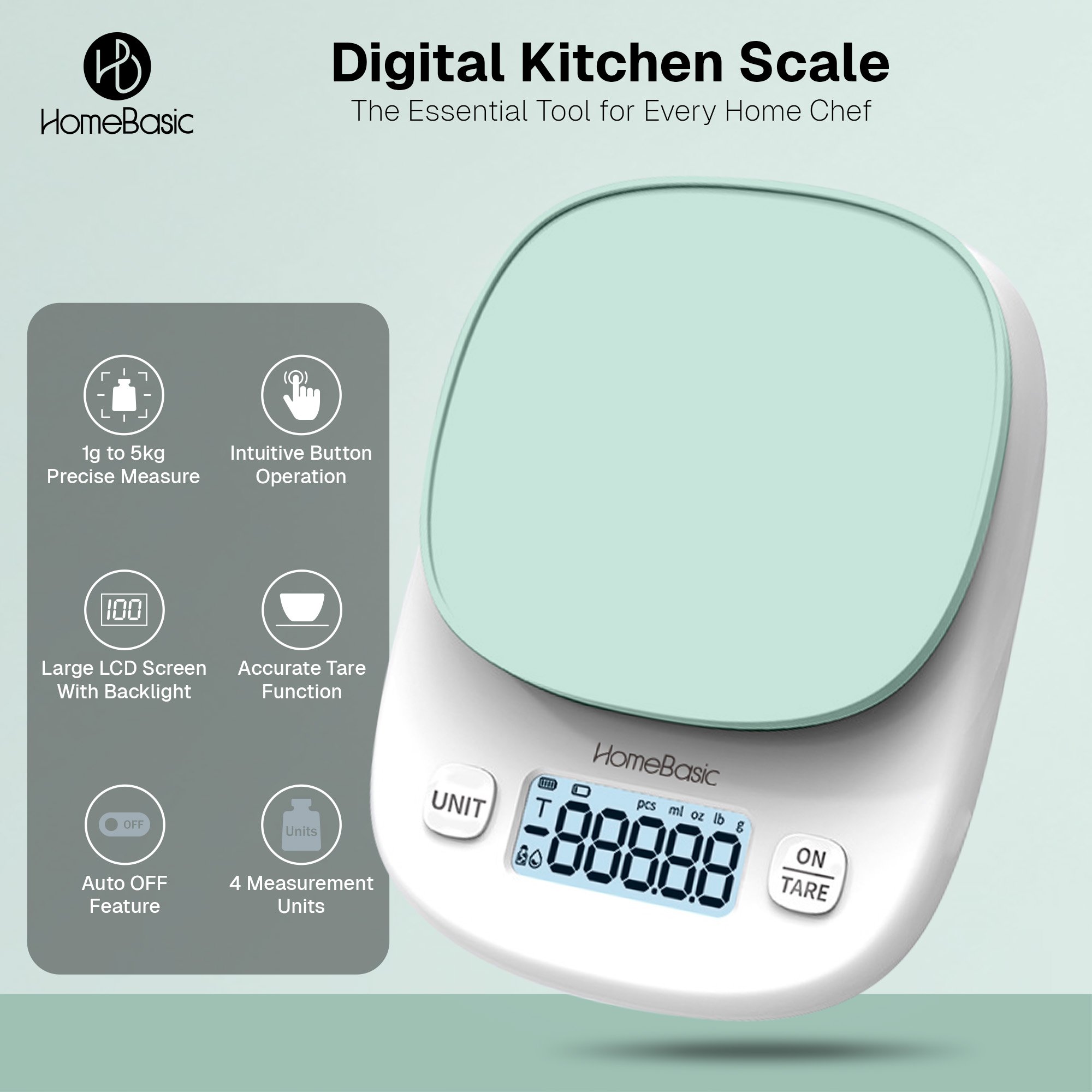 Upgrade your kitchen essentials with the HomeBasic Digital Kitchen Weighing Scale, designed for accuracy, ease, and everyday use. Whether you’re a home chef, baker, or fitness enthusiast, this kitchen weighing scale offers precise measurements ranging from 1g to 5kg with a fine 0.1g sensitivity, making it the perfect companion for meal prep, baking, or portion control.