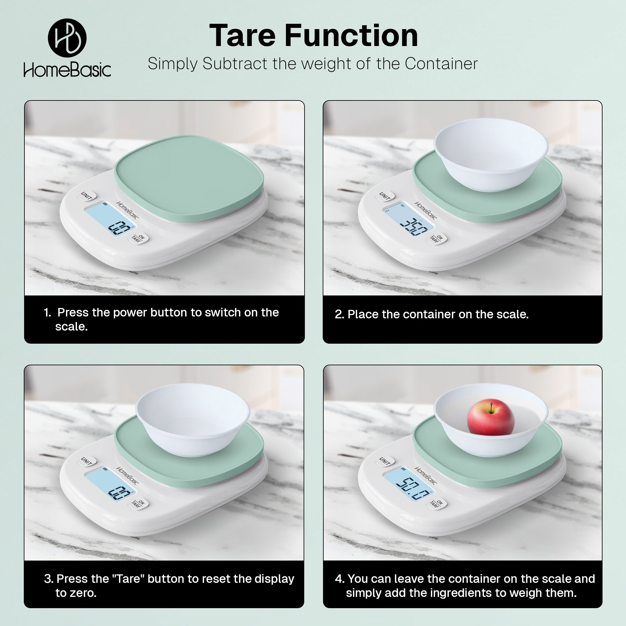 Its intuitive TARE function allows you to reset to zero between ingredients, while the bright, backlit LCD screen offers clear readability in any lighting. Easily toggle between units—grams, pounds, ounces, and milliliters—to match your recipe or portioning needs. This electronic digital kitchen weighing scale is not just smart; it’s energy-conscious too, with an auto-off feature to conserve battery life.