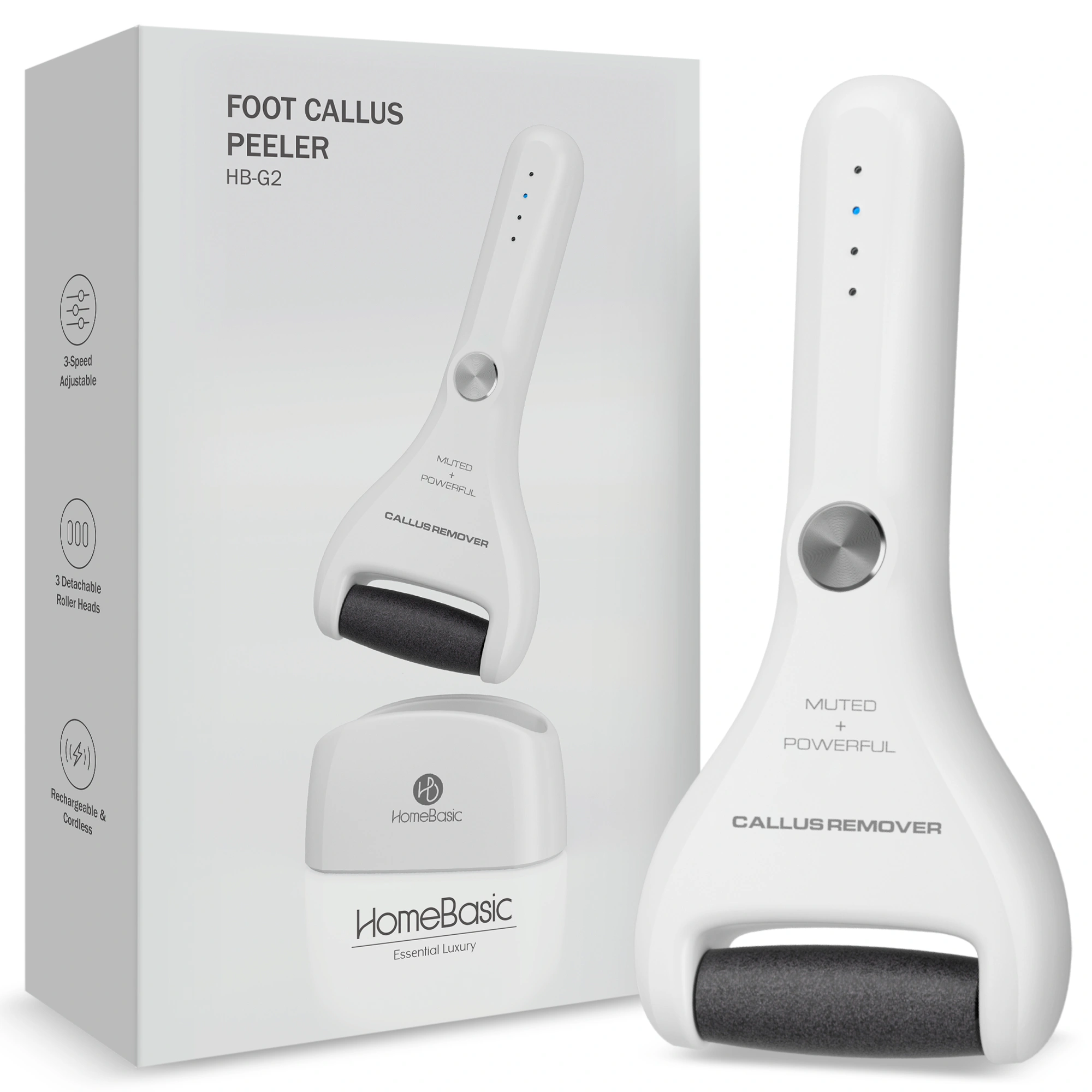 – Includes 3 interchangeable roller heads (fine, coarse, extra-coarse) to tackle all types of calluses and dead skin