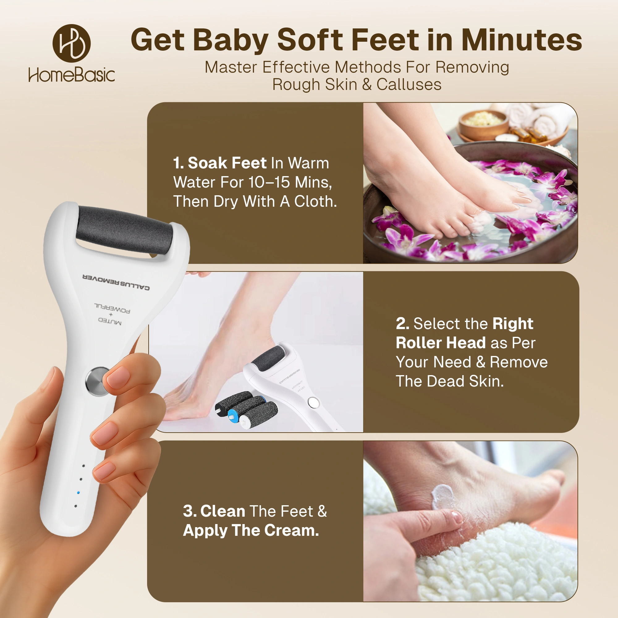 For Feet Is Your All-in-one Pedicure Solution Designed To Deliver Silky-smooth Feet From The Comfort Of Your Home. Powered By A Long-lasting Rechargeable Battery, Equipped With Three Interchangeable Roller Heads, And Crafted For Comfort & Precision—this Is The Ultimate Self-care Tool For Men And Women Alike. Get Ready To Step Confidently With Baby-soft Feet All Year Round.