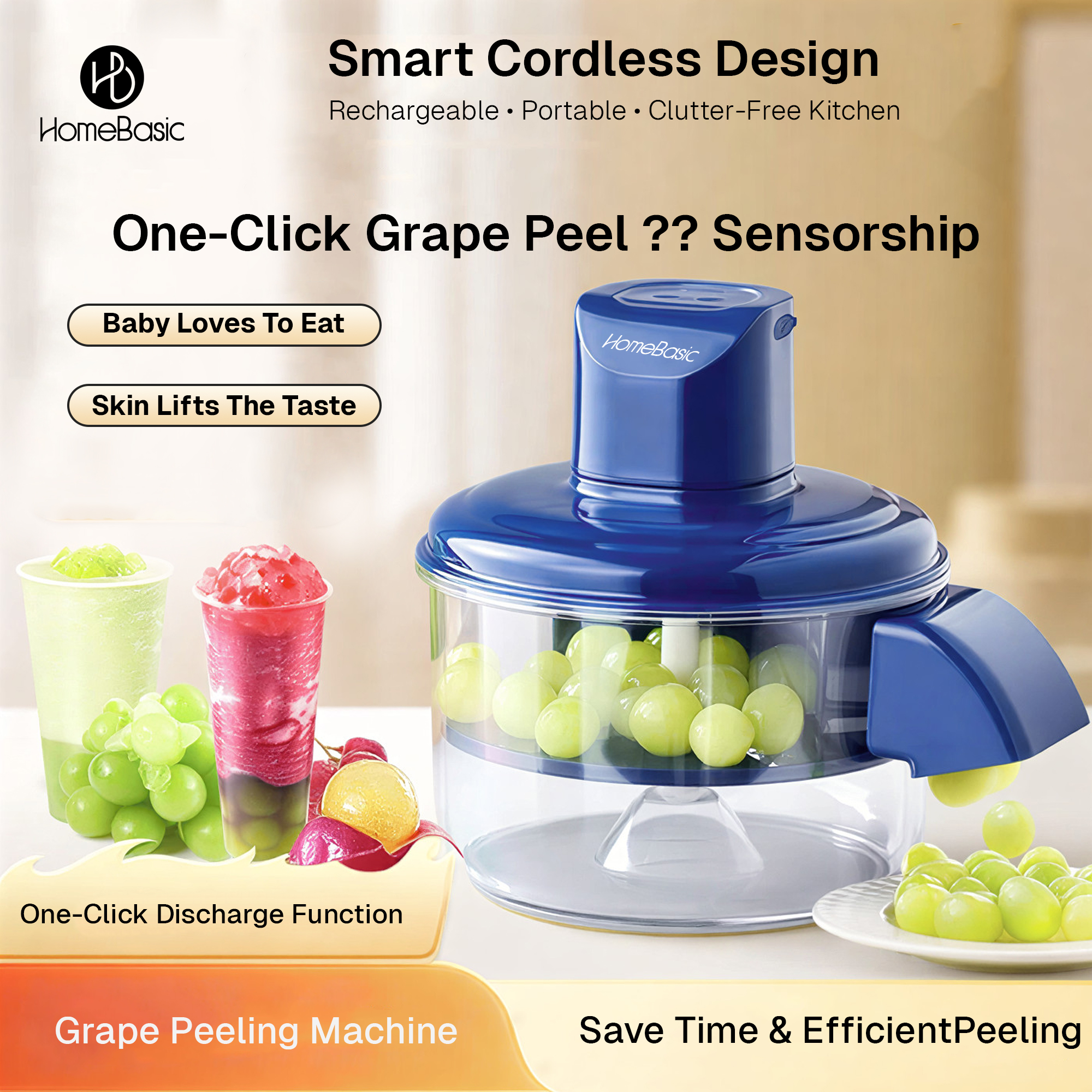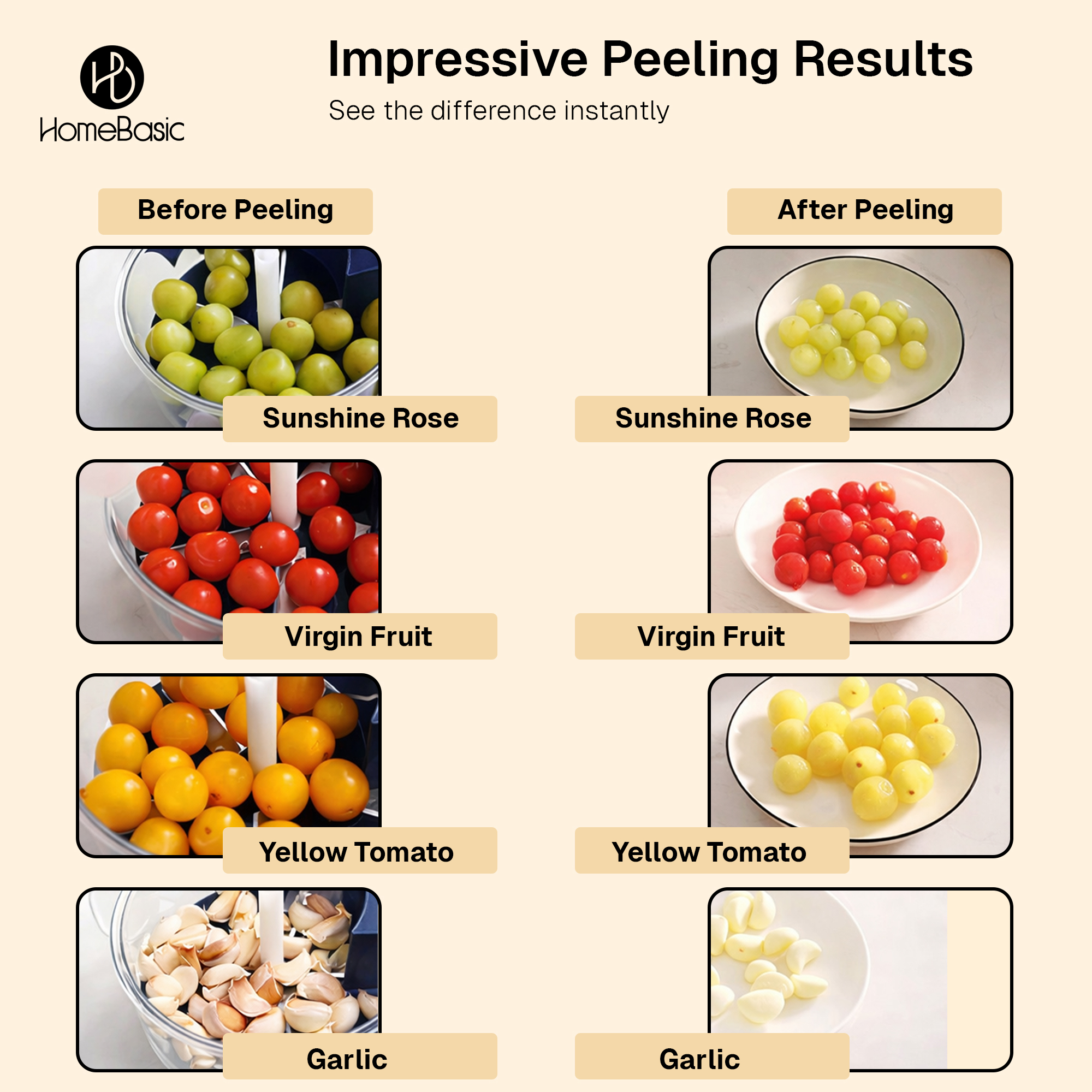 • Fast Electric Peeling in 10–25 Seconds: This Electric Automatic Fruit Peeler Machine delivers quick, uniform peeling in just seconds. Ideal for garlic, grapes, tomatoes, potatoes, and more, saving prep time while reducing food waste.