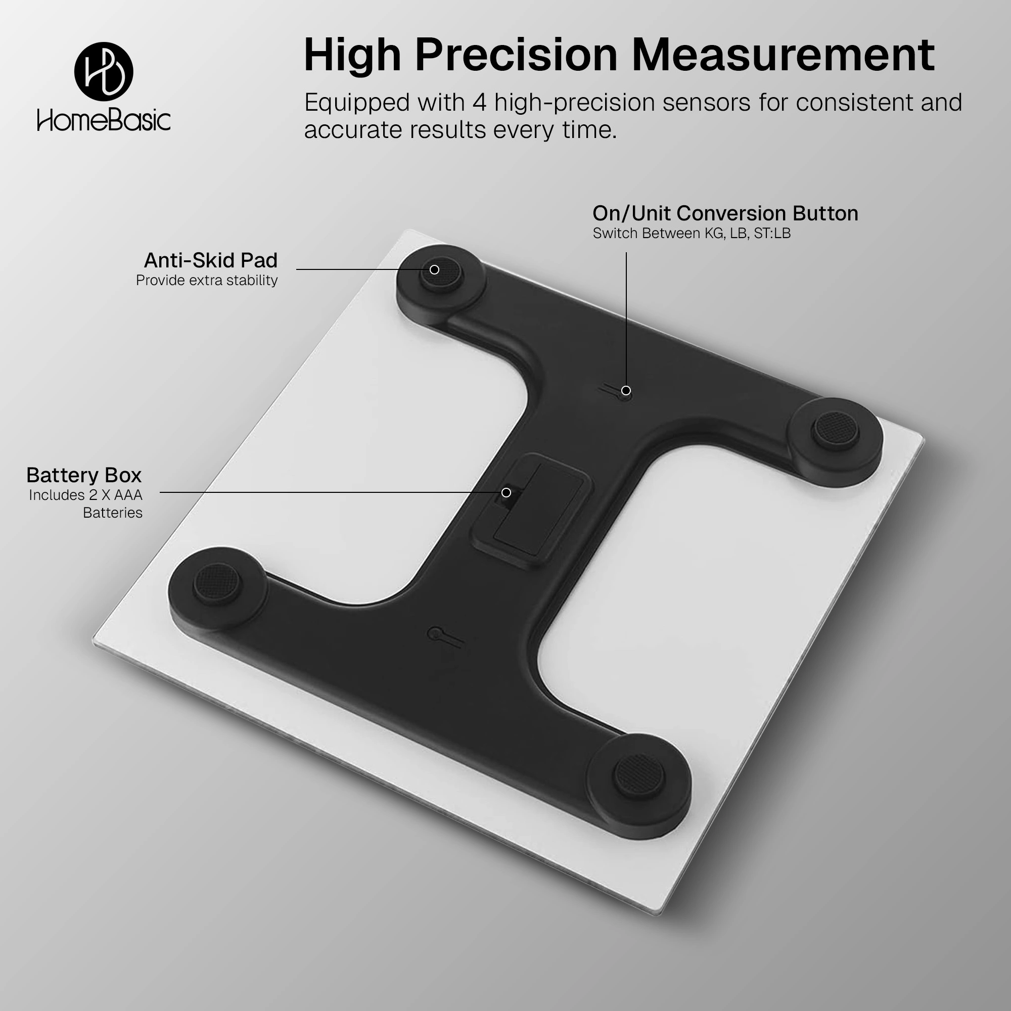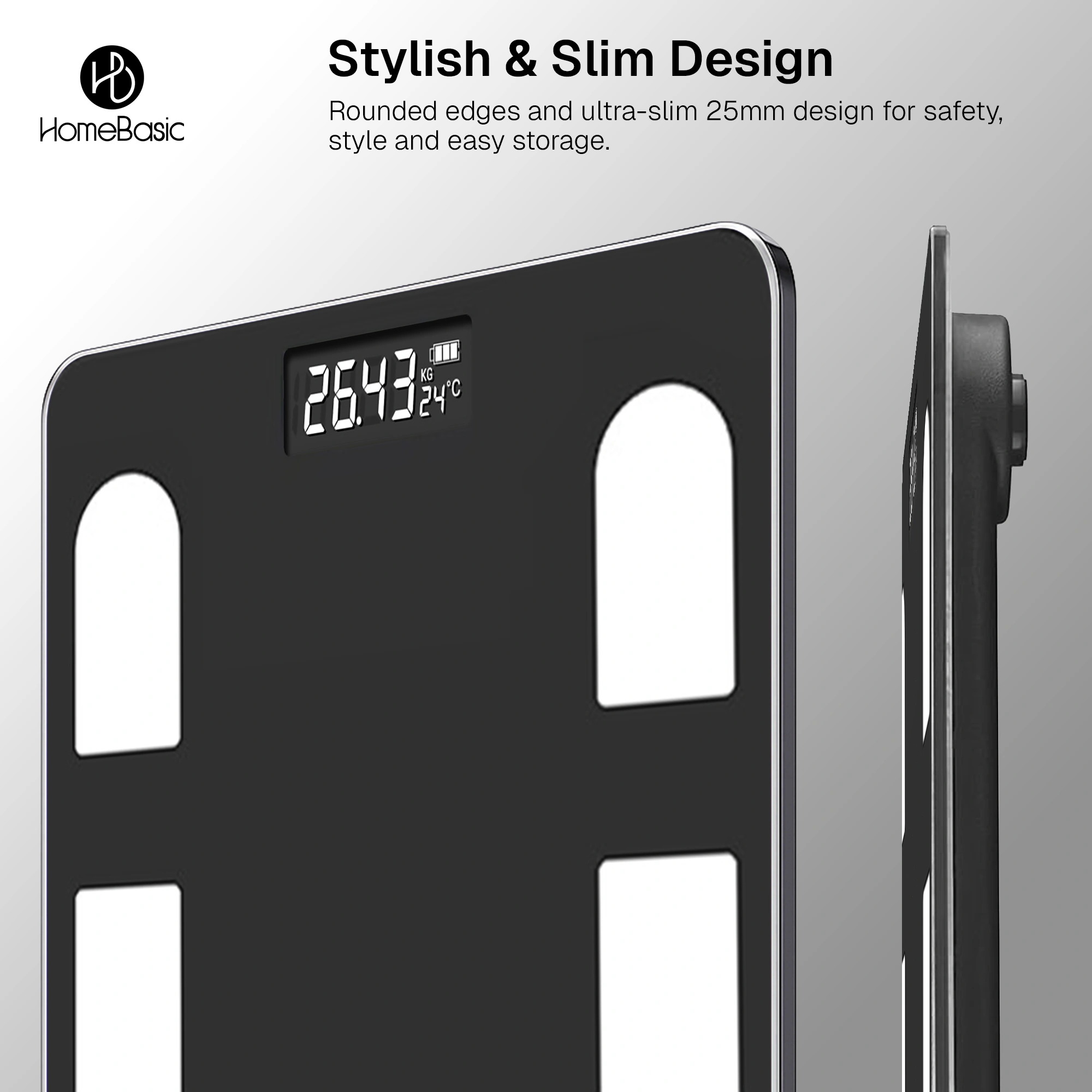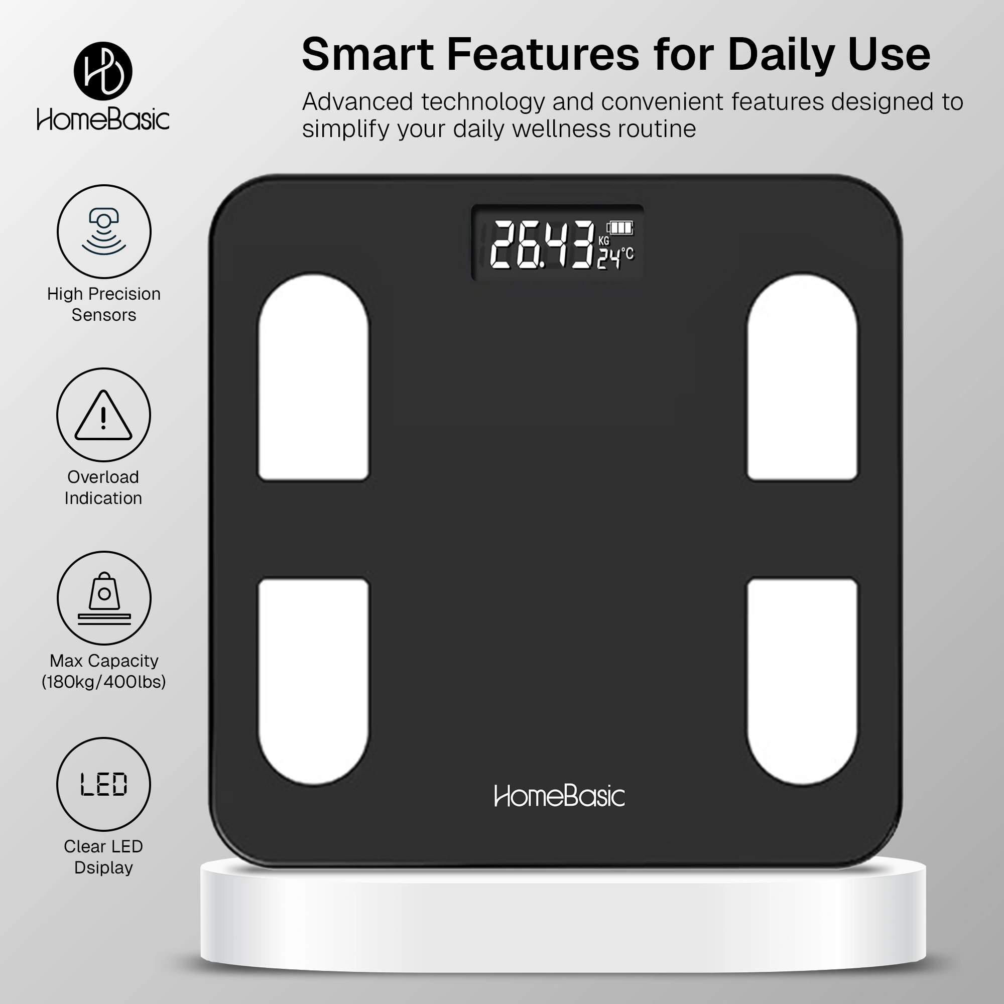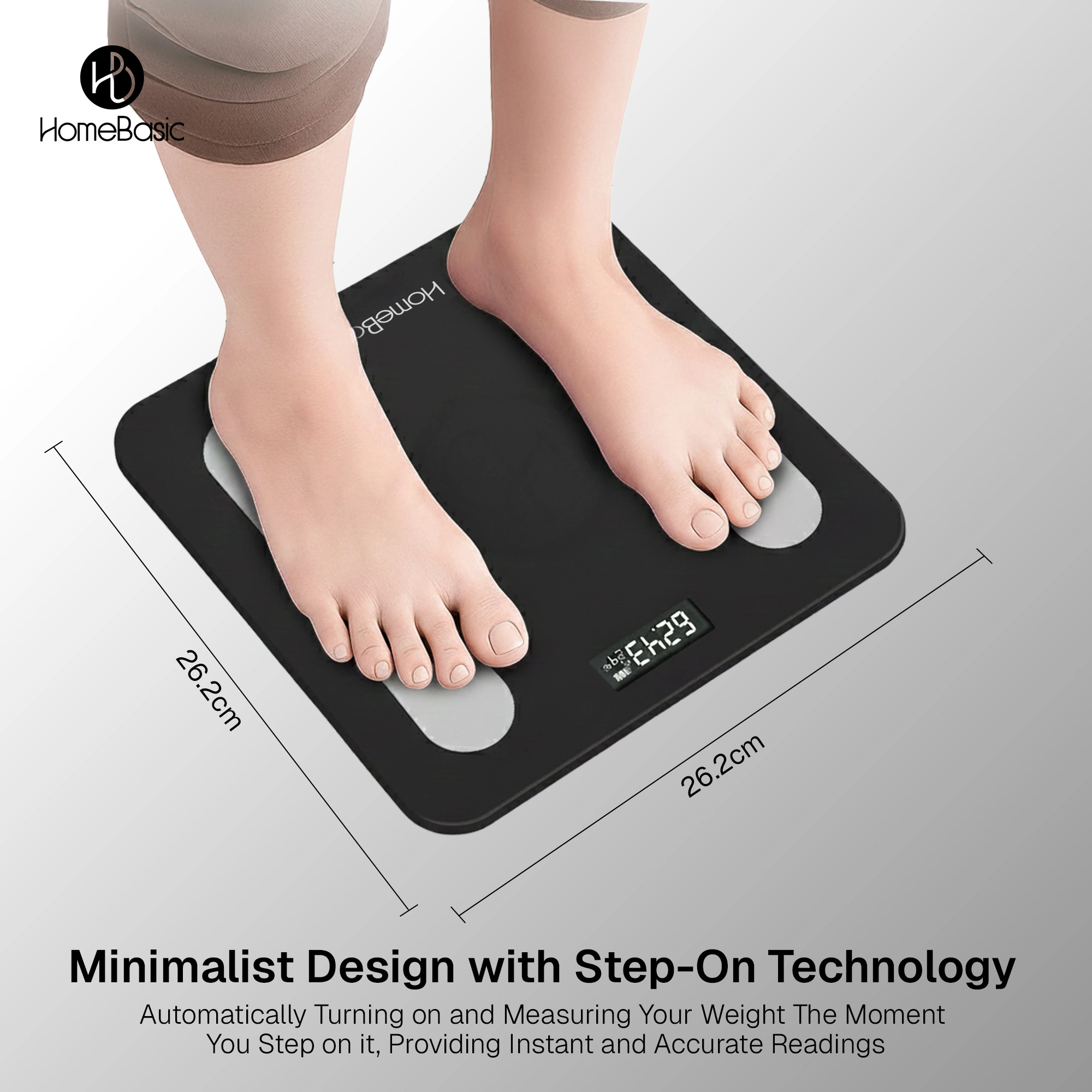 Stay on top of your health with the HOMEBASIC Smart digital Body Weighing Scale, designed for accurate, everyday weight tracking. Built with high-precision sensors, a durable toughened glass platform, and a clear LCD display, this digital weighing scale offers fast, reliable readings up to 180kg. With step-on activation, auto ON/OFF, multi-unit support, and temperature display, it’s a simple and smart choice for modern homes.